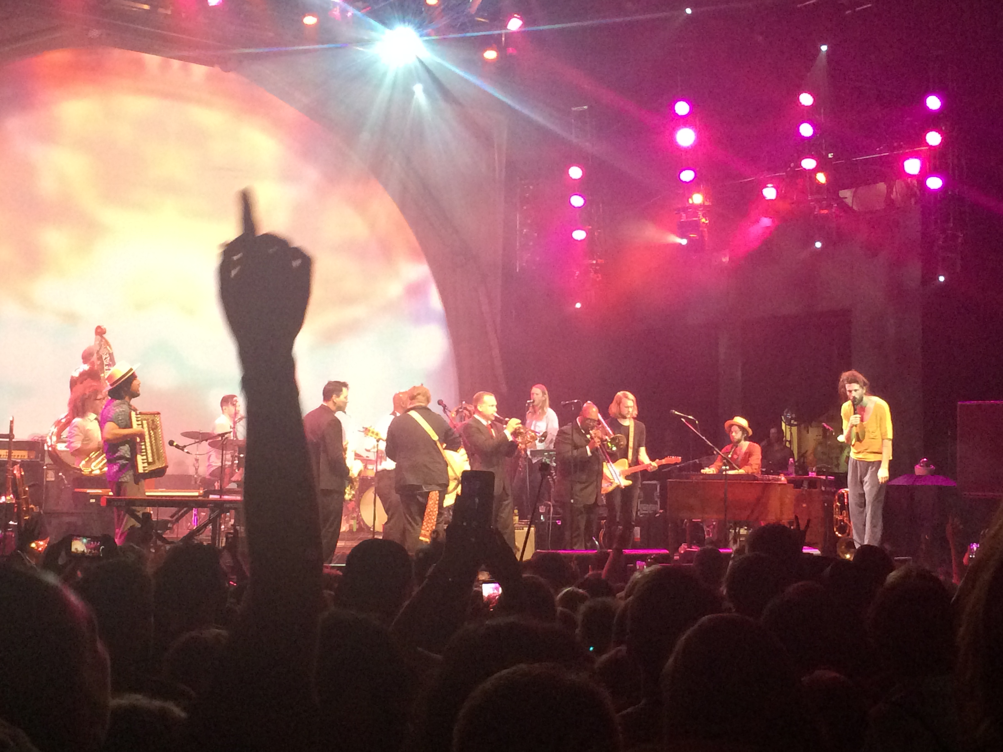 Edward Sharpe and the Magnetic Zeros brought the love to Prospect Park Tuesday night, quite literally. Led by Alex Ebert, the band’s feel-good vibe had the crowd singing, swaying, and toking, and also inspired two marriage proposals. Incidentally, both women said yes. The show was a Celebrate Brooklyn! benefit concert. See photos below.