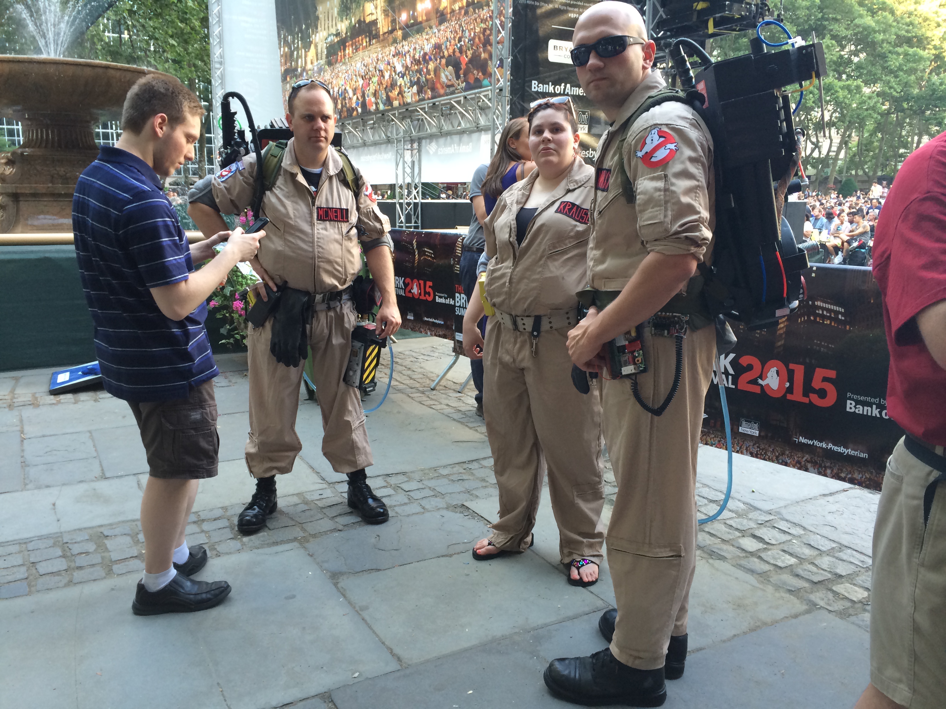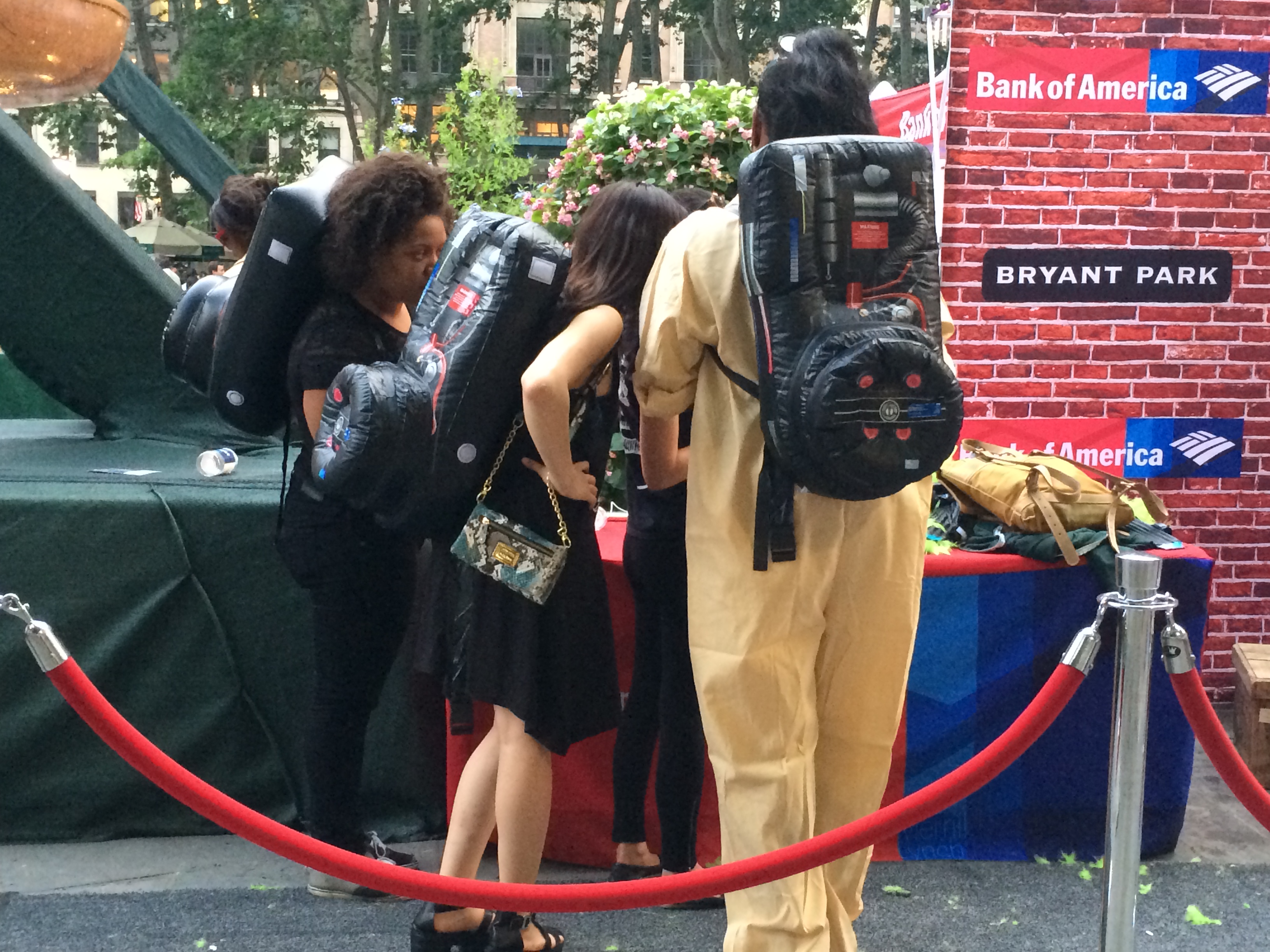 The original Ghostbusters (1984) directed by Ivan Reitman and starring Bill Murray, Harold Ramis and Dan Aykroyd had the honor of kicking off this year’s 10-week series. There was definitely added enthusiasm for the selection since the all-female, Paul Feig-directed reboot has been making headlines of late. We spotted several people dressed up as ghostbusters, kids were wearing old ghostbusters t-shirts and there was a photo booth where people could put on a pack and pretend like they were hunting poltergeists. Bank of America raffled off some film prize packs and handed out some free Ghostbusters-inspired snacks too: green-colored kettle corn and water.