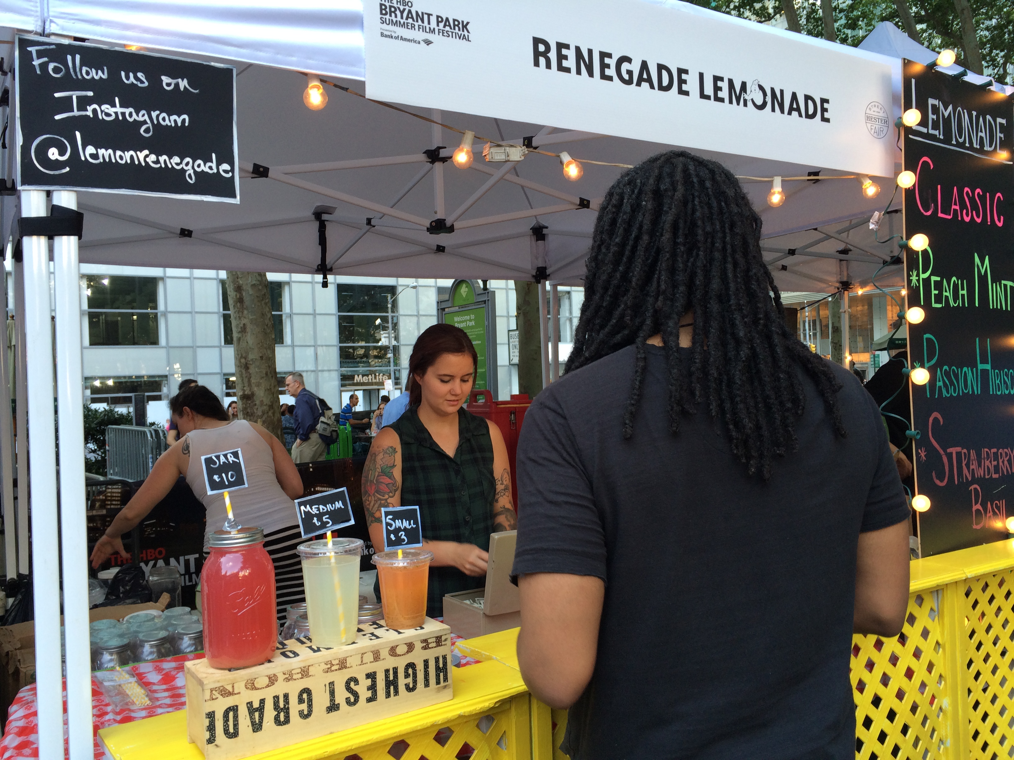 Food vendors from the Hester Street Fair were on hand and will be returning every Monday throughout the series to provide edible options for those that don’t bring their own. We spotted Red Star Sandwich, Renegade Lemonade, Cofeed, and Waffles and Dinges, among others.