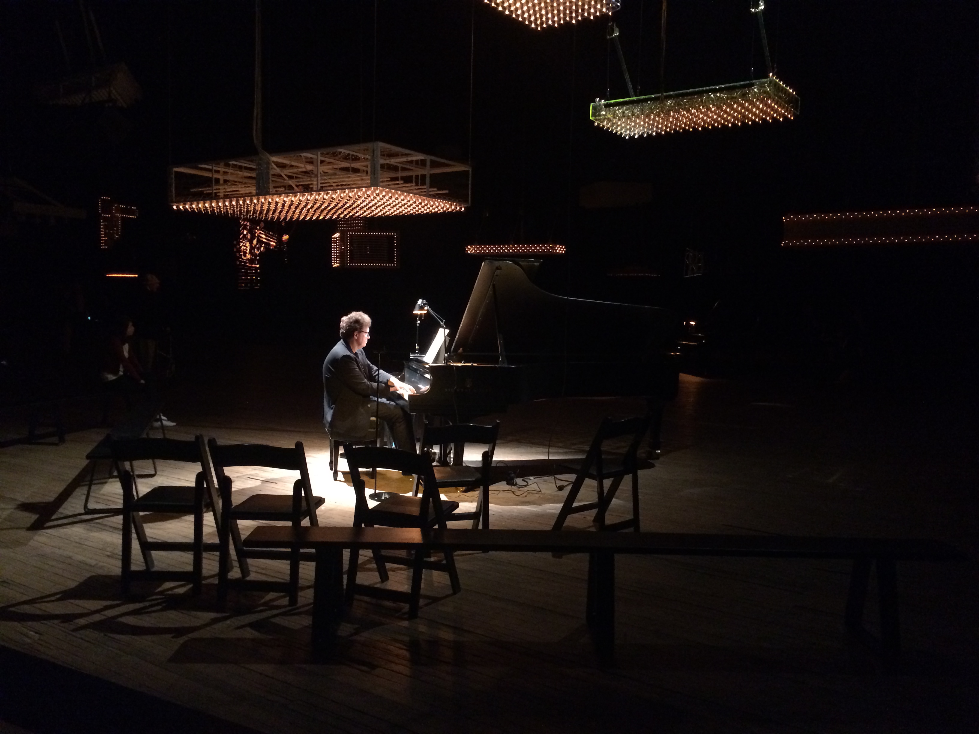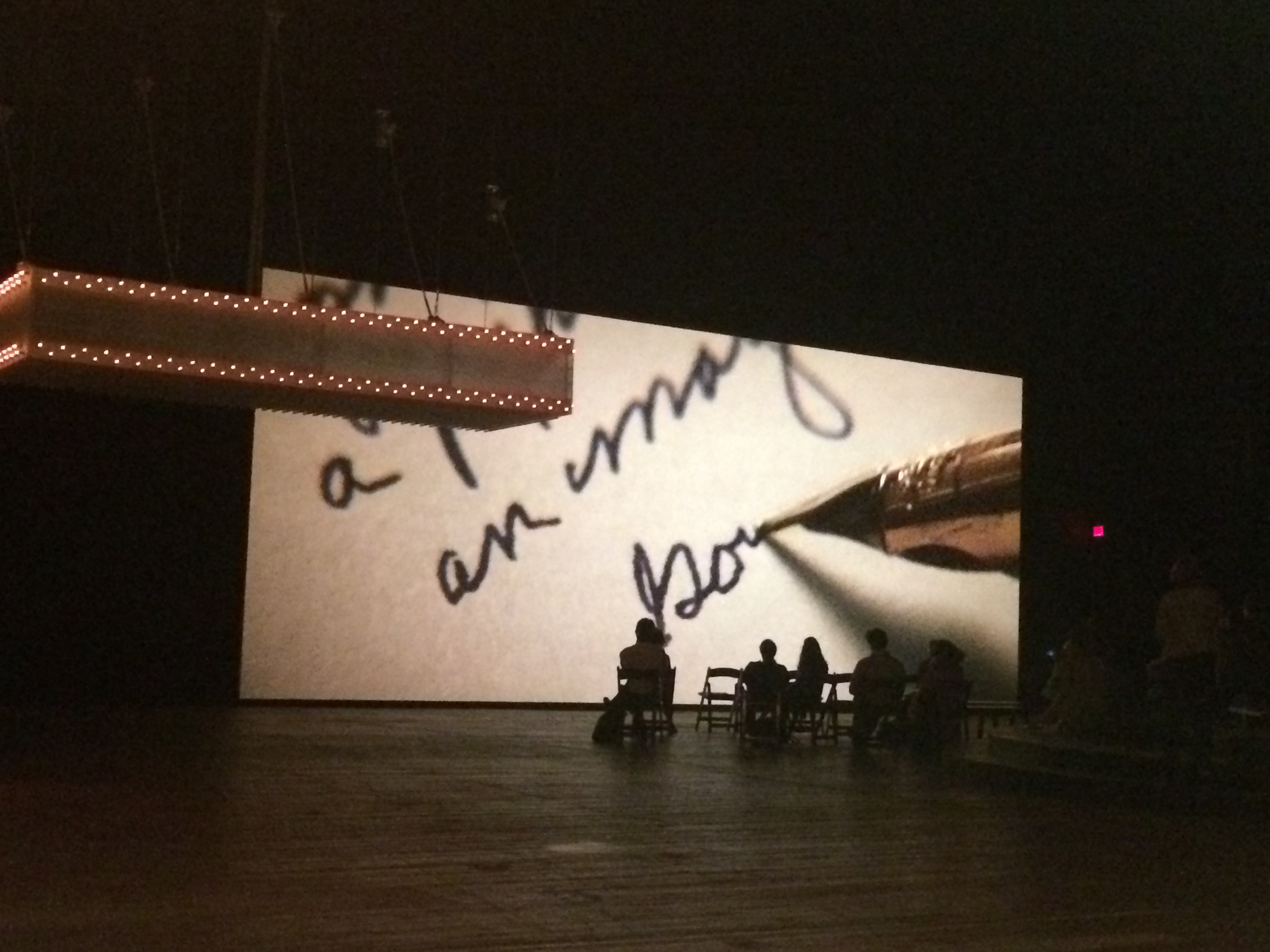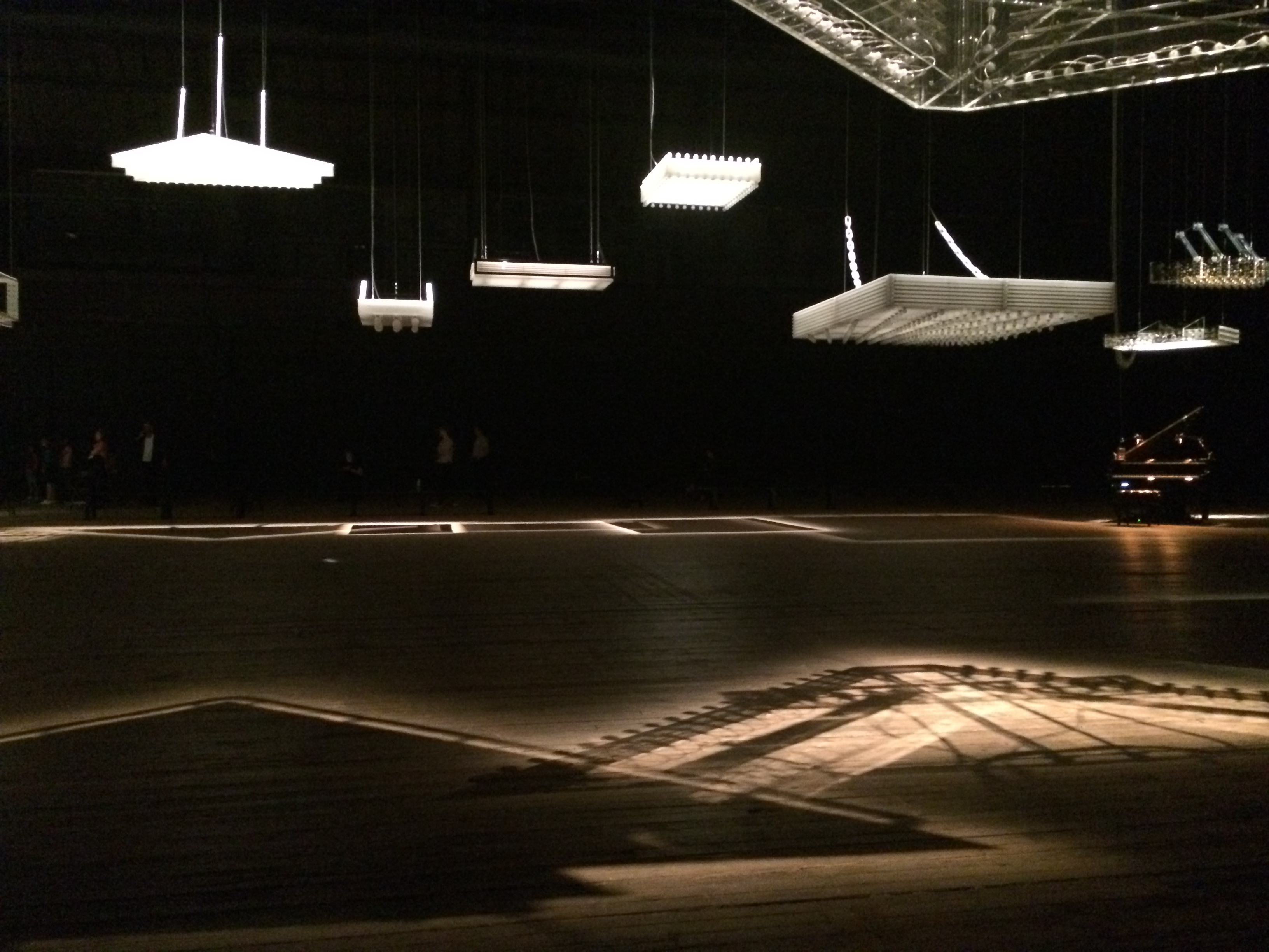 A choreographed durational work, H {N)Y P N(Y} OSIS ebbs and flows and takes several hours to appreciate. It consists of a variety of elements, including video, sound, performance and sculpture. Upon entering the space, visitors find themselves strolling down an avenue that is flanked by 26 marquee sculptures. It’s like a minimalist 42nd street that’s been reduced to light and sound. These sculptures brighten and dim as other elements are activated. A lone piano player, the world renowned Mikhail Rudy, performs works by Ligeti, Feldman, Ravel, and Scriabin, among others, and five films, The Crowd (2015), Marilyn (2012), Invisibleboy (2010), June 8, 1968 (2009), and Anywhere Out in the World (2000), take their turn in the spotlight. Also making an appearance is Ann Lee. A Japanese Manga character that Philippe Parreno and Pierre Huyghe bought the rights to in 2000, Ann Lee is brought to life by performance artist Tino Sehgal. Reprising his work from Frieze New York 2014, Sehgal enlists a group of actors to embody the lost girl. They roam the space and engage with visitors.
