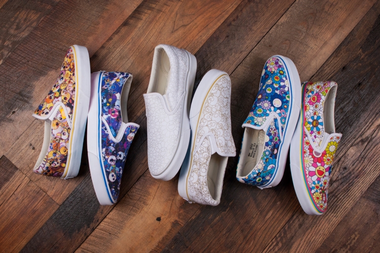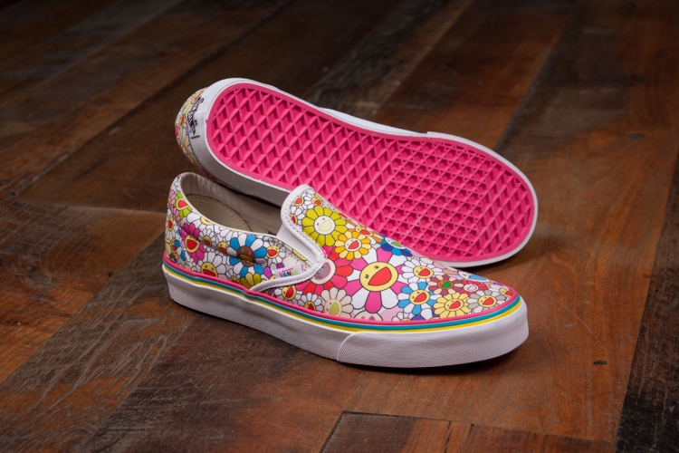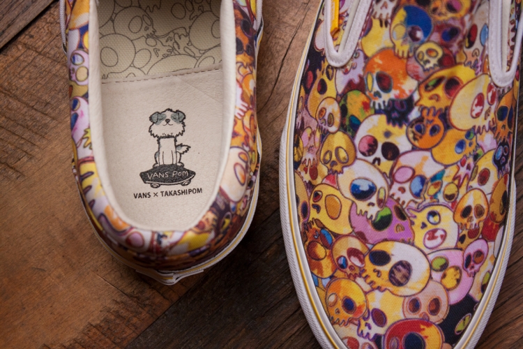 The artist next popped up in Paris for Men’s Fashion Week and the launch of his Vans project. The artist teamed with the lifestyle brand for the Fall 2015 season of Vault by Vans. Two of Murakami’s reoccurring motifs, the smiling flower and skull patterns, are being featured on Vans’ classic slip-ons, as well as t-shirts and skateboards. Murakami and friends celebrated the project on Saturday. Perrotin set up an elaborate installation complete with carnival games, and a special performance by Ghostpoet. The limited edition collection is now available in stores. In New York, it can be found at The Vans DQM General (7 East 3rd Street, New York, NY 10003), Barney’s (660 Madison Avenue, New York, NY 10065), Dover Street Market (160 Lexington Avenue, New York, NY 10016), and both Opening Ceremony locations. A compete list of dealers can be found at the Vans website.